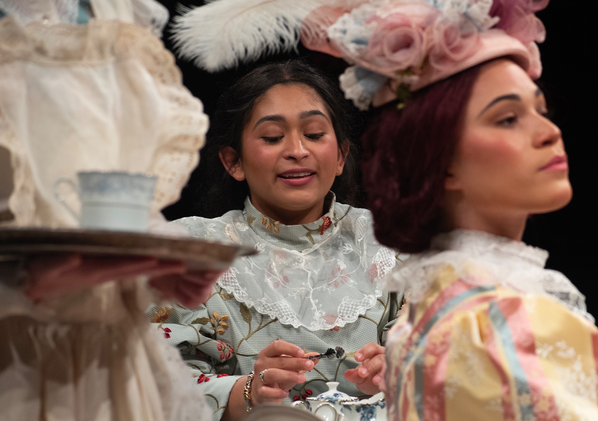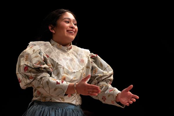 Bianca Zamorano, who portrays Cecily Cardew in “The Importance of Being Earnest,” performs during the show’s final dress rehearsal Nov. 12, 2025, on the Texas Wesleyan University campus. (McKinnon Rice | Fort Worth Report)